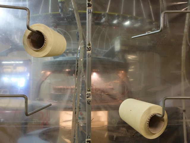 caroline bach Le tricotage Charlieu 2023 série « Ardelaine, la capsule-chantier #1 » Papier peint adhésif, 120 x 160 cm.