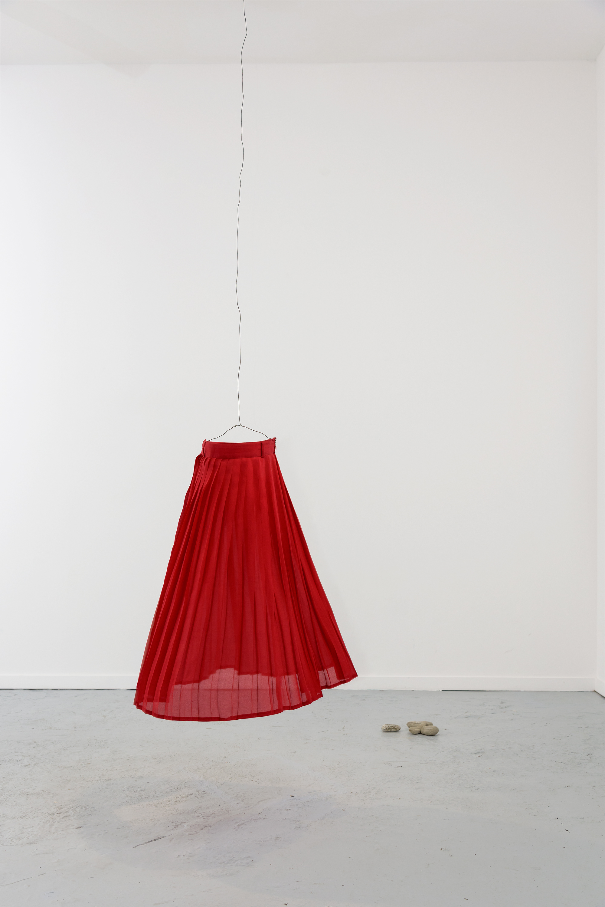 Jupe rouge, fil de fer, moteur de boule à facettes