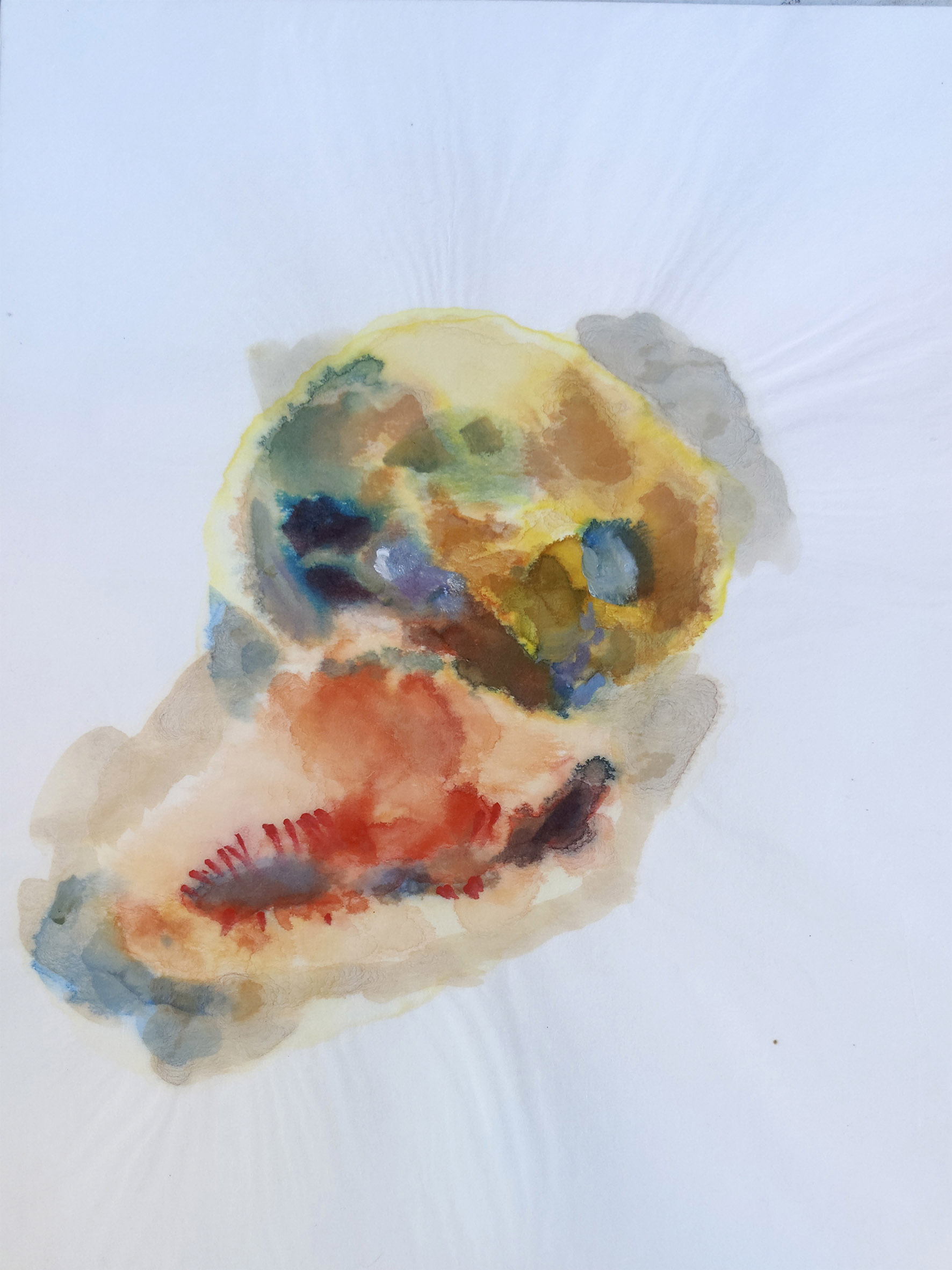 emmanuel rivière Crâne Enfant et coquillage 1 été 2023 Encre et gouache sur papier coréen, 41 x 31 cm