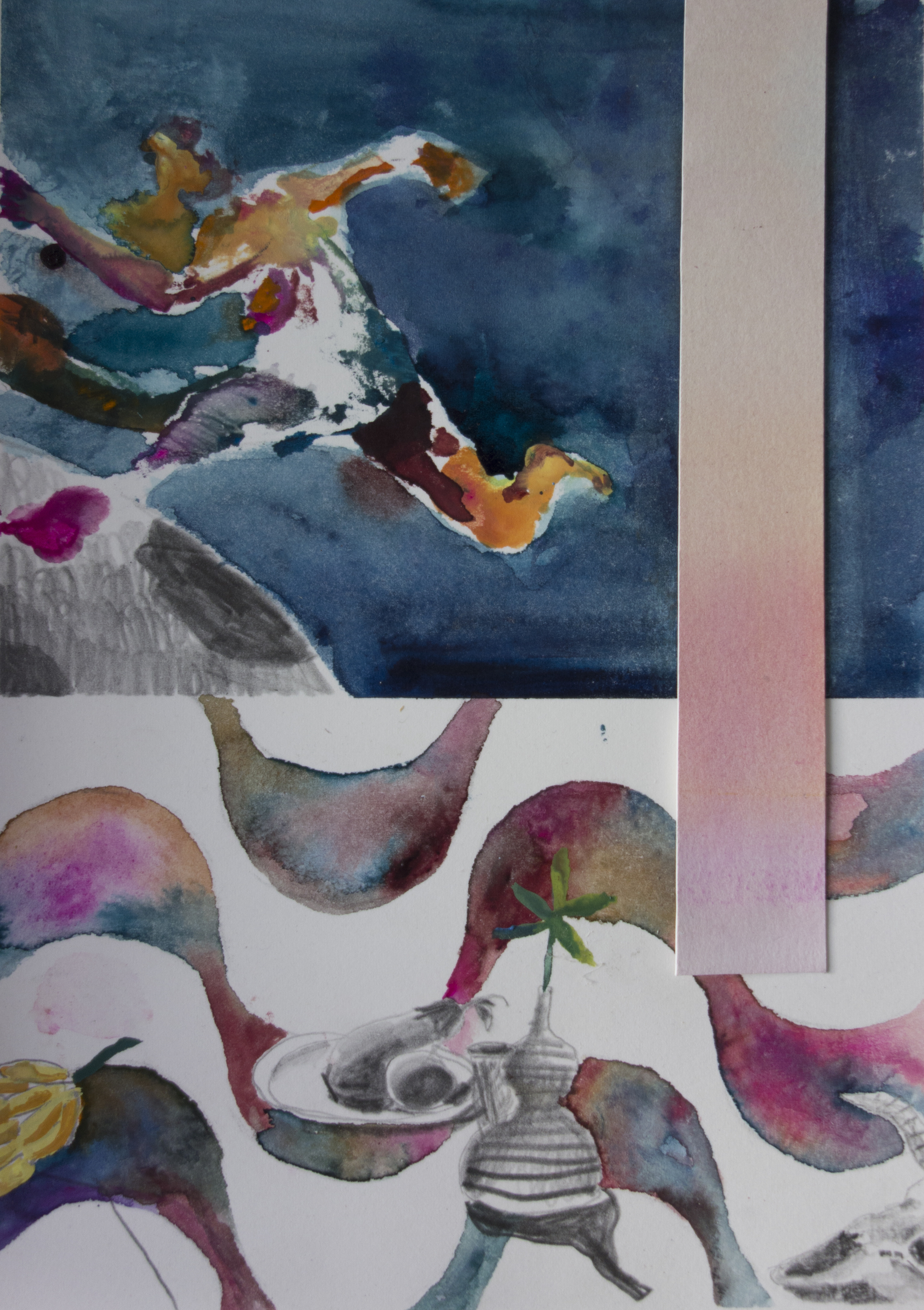 marie-anita gaube Energie potentielle (dessin préparatoire 2) aquarelle, gouache et graphite sur papier diptyque (2) 2 x 23 x 30,5 cm 2016
