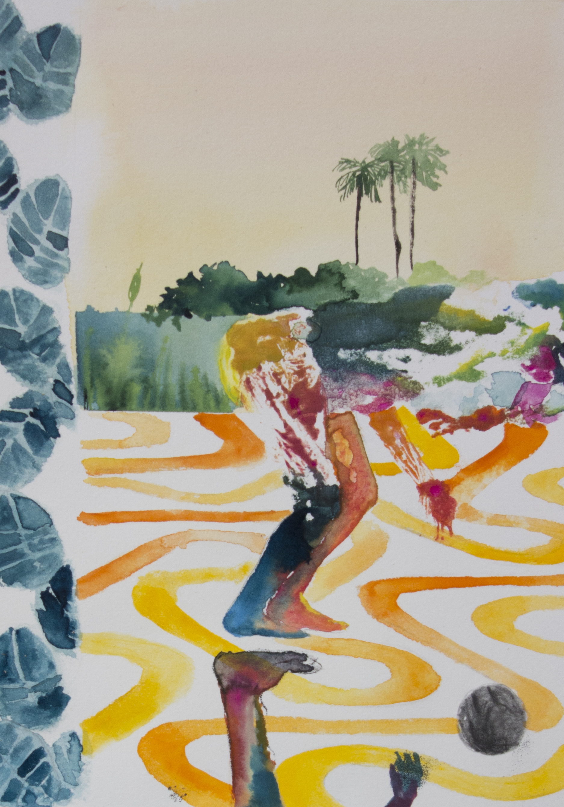 marie-anita gaube La lutte amoureuse (dessin préparatoire) aquarelle, gouache et graphite sur papier diptyque (1) 2 x 23 x 30,5 cm 2016